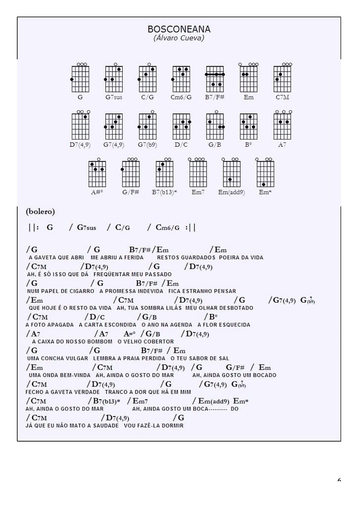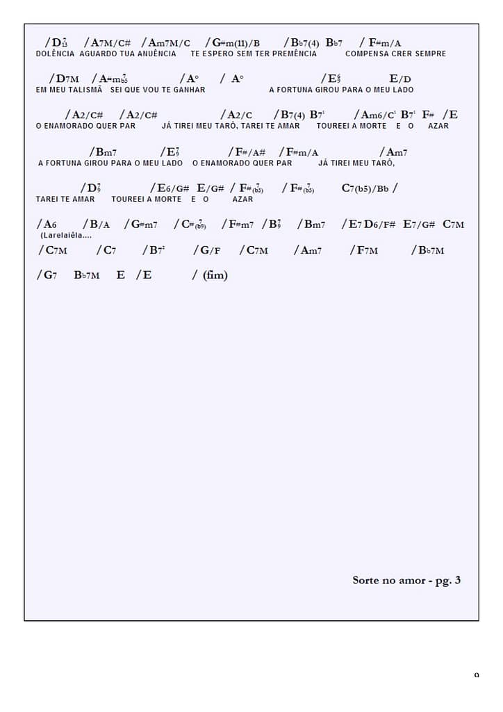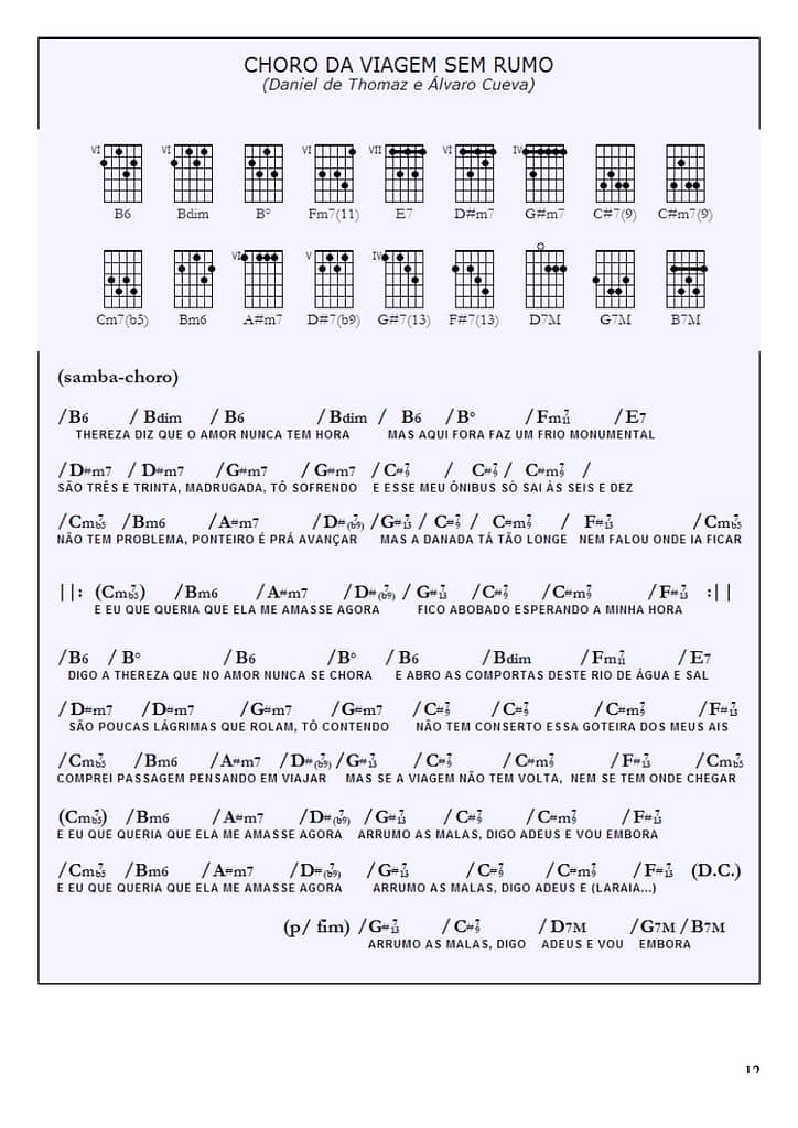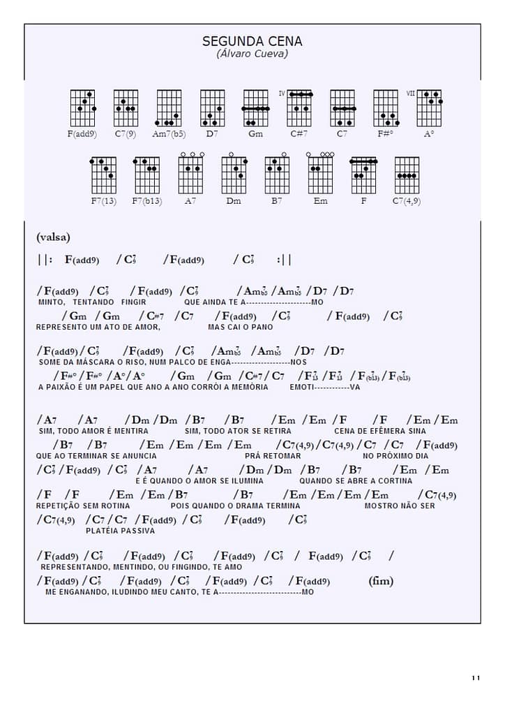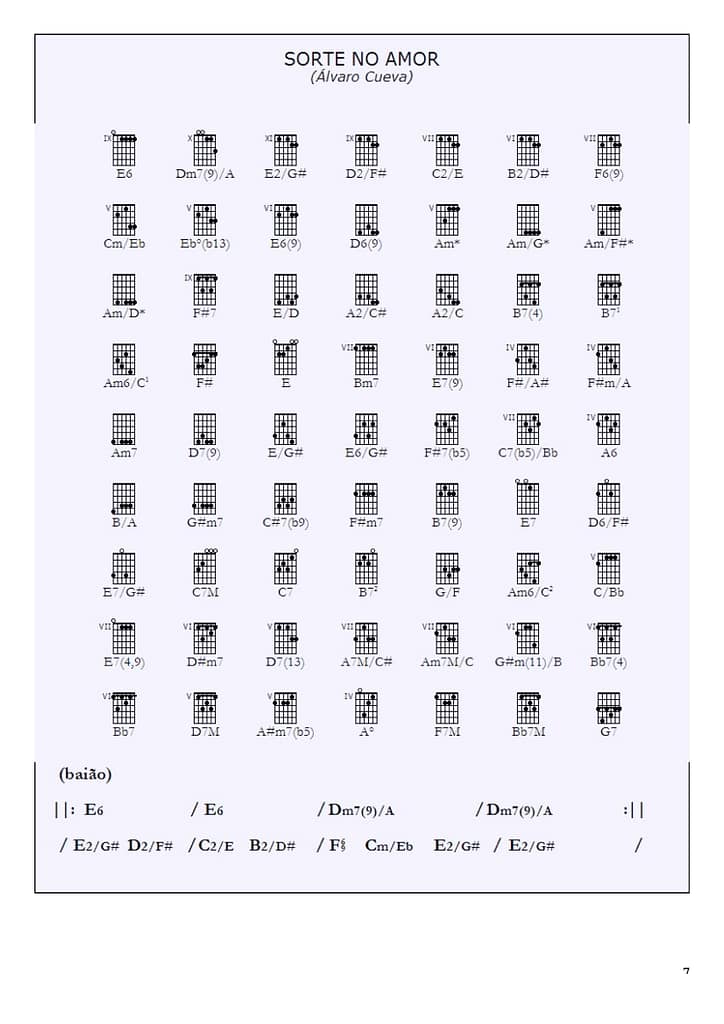 As cifras são apresentadas sobre a letra das canções e um banco de acordes na parte superior de cada uma delas, indica uma sugestão de desenho no braço do violão. Os acordes são sempre posicionados sobre a sílaba em que se iniciam. As barras (/) ao longo da música representam os compassos de duração e podem conter um ou mais acordes.