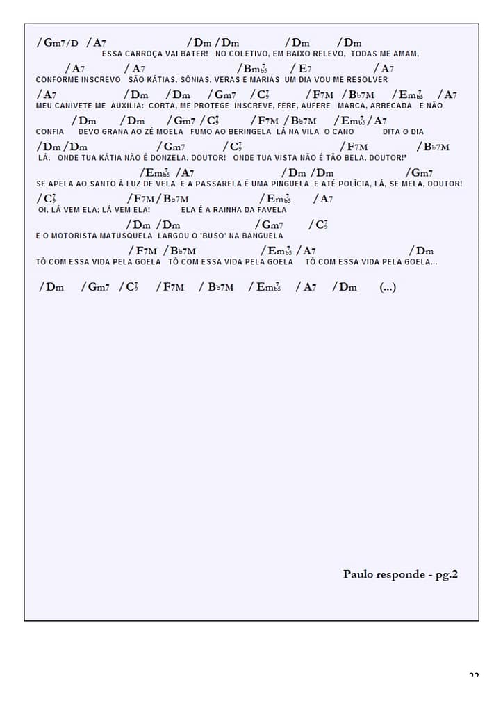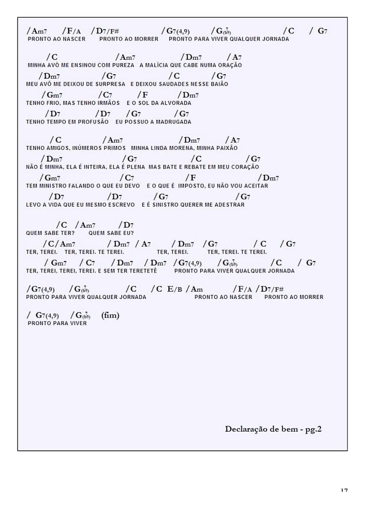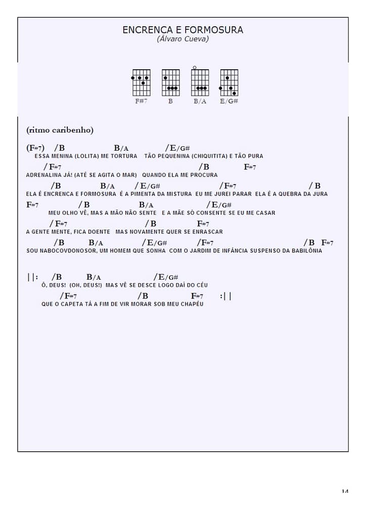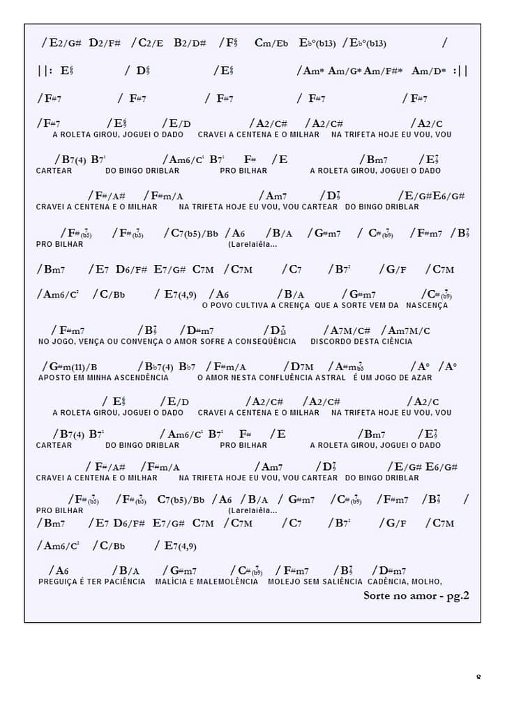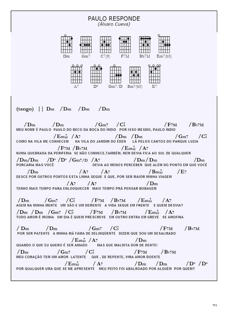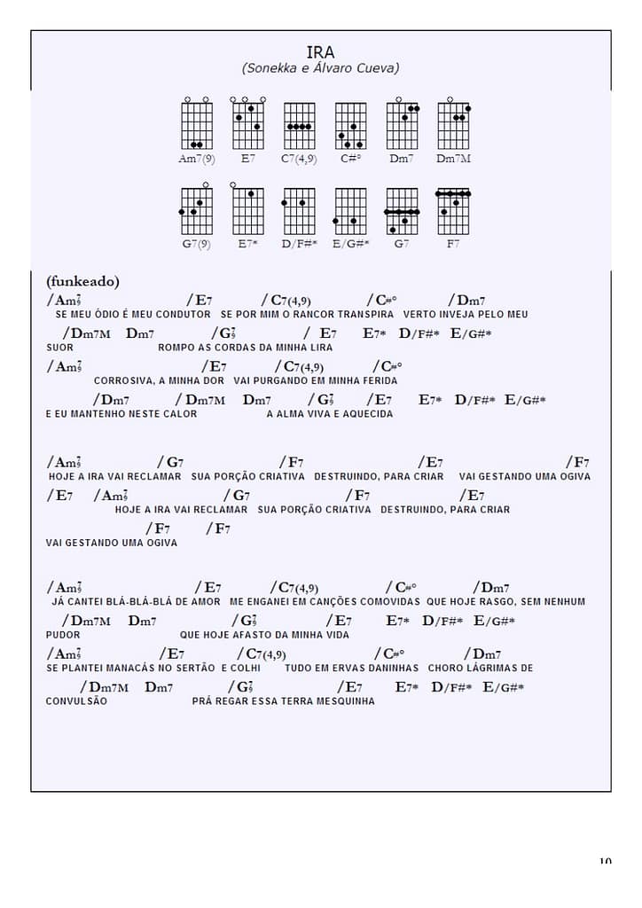 As cifras são apresentadas sobre a letra das canções e um banco de acordes na parte superior de cada uma delas, indica uma sugestão de desenho no braço do violão. Os acordes são sempre posicionados sobre a sílaba em que se iniciam. As barras (/) ao longo da música representam os compassos de duração e podem conter um ou mais acordes.
