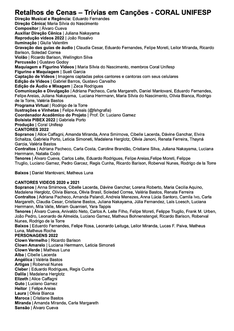 Trívias em Canções – Ficha Técnica